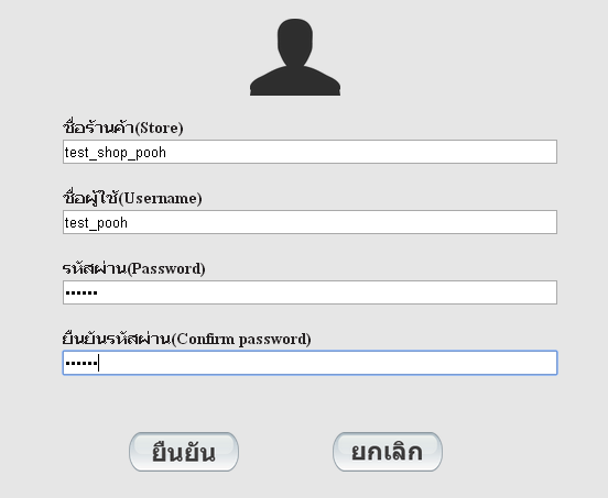 ขั้นตอนการสมัครสมาชิก ให้ใส่ชื่อร้านค้า ลงในช่อง ช่องชื่อร้านค้า ใส่ชื่อผู้ใช้ เพื่อเป็น username ในการลงชื่อเข้าใช้
