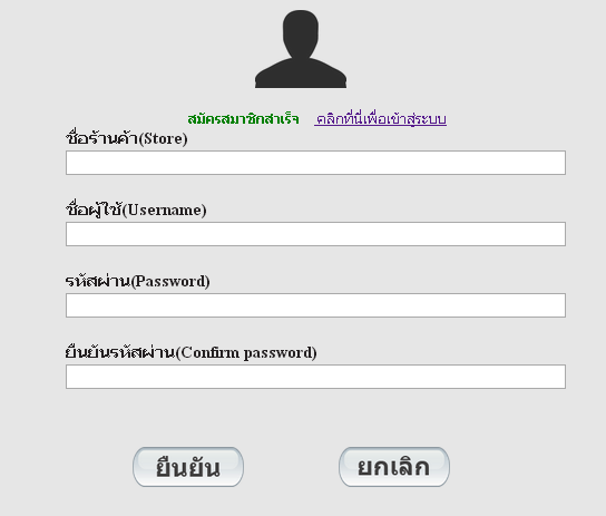 ขั้นตอนการสมัครสมาชิก ให้ใส่ชื่อร้านค้า ลงในช่อง ช่องชื่อร้านค้า ใส่ชื่อผู้ใช้ เพื่อเป็น username ในการลงชื่อเข้าใช้